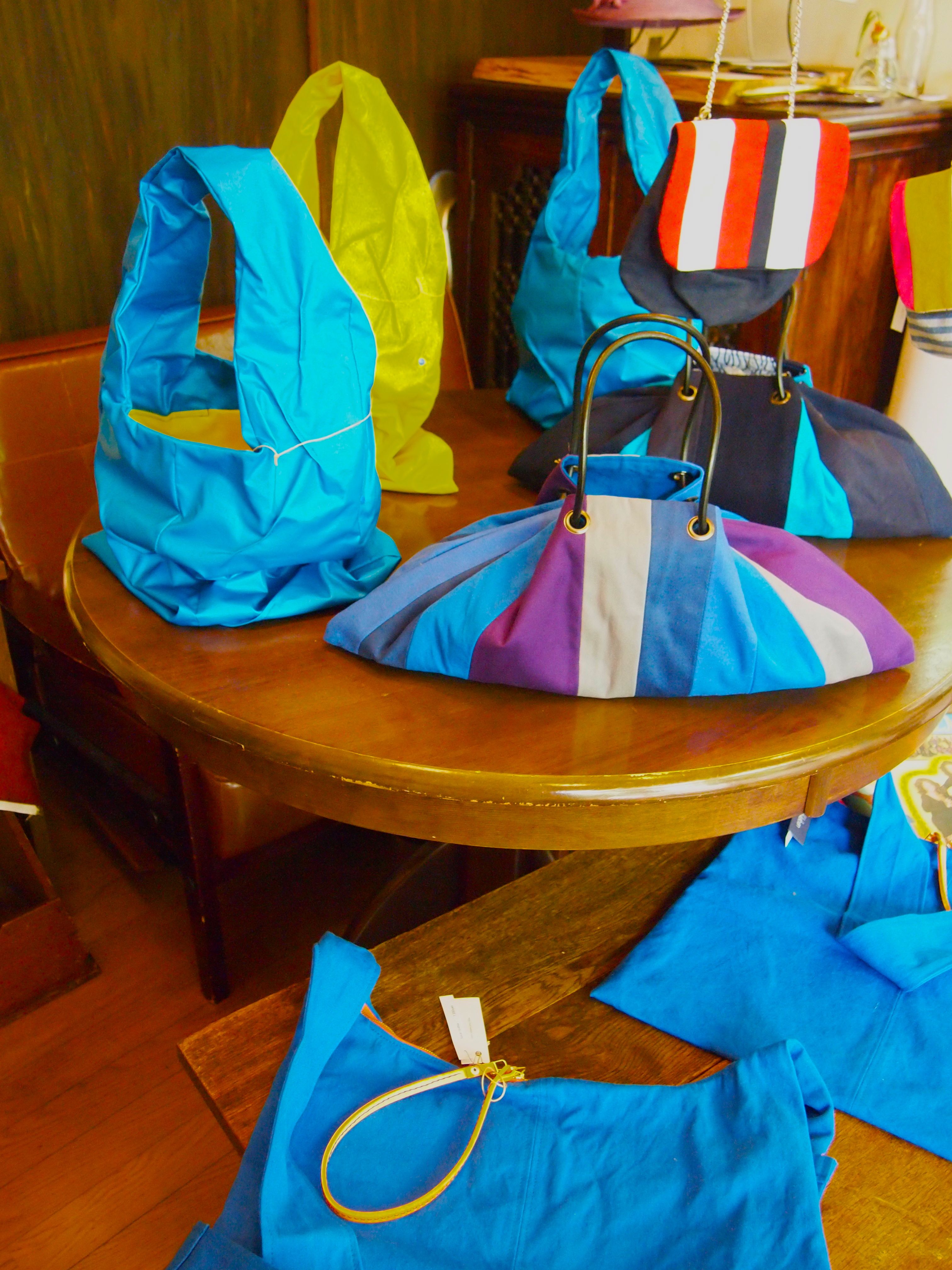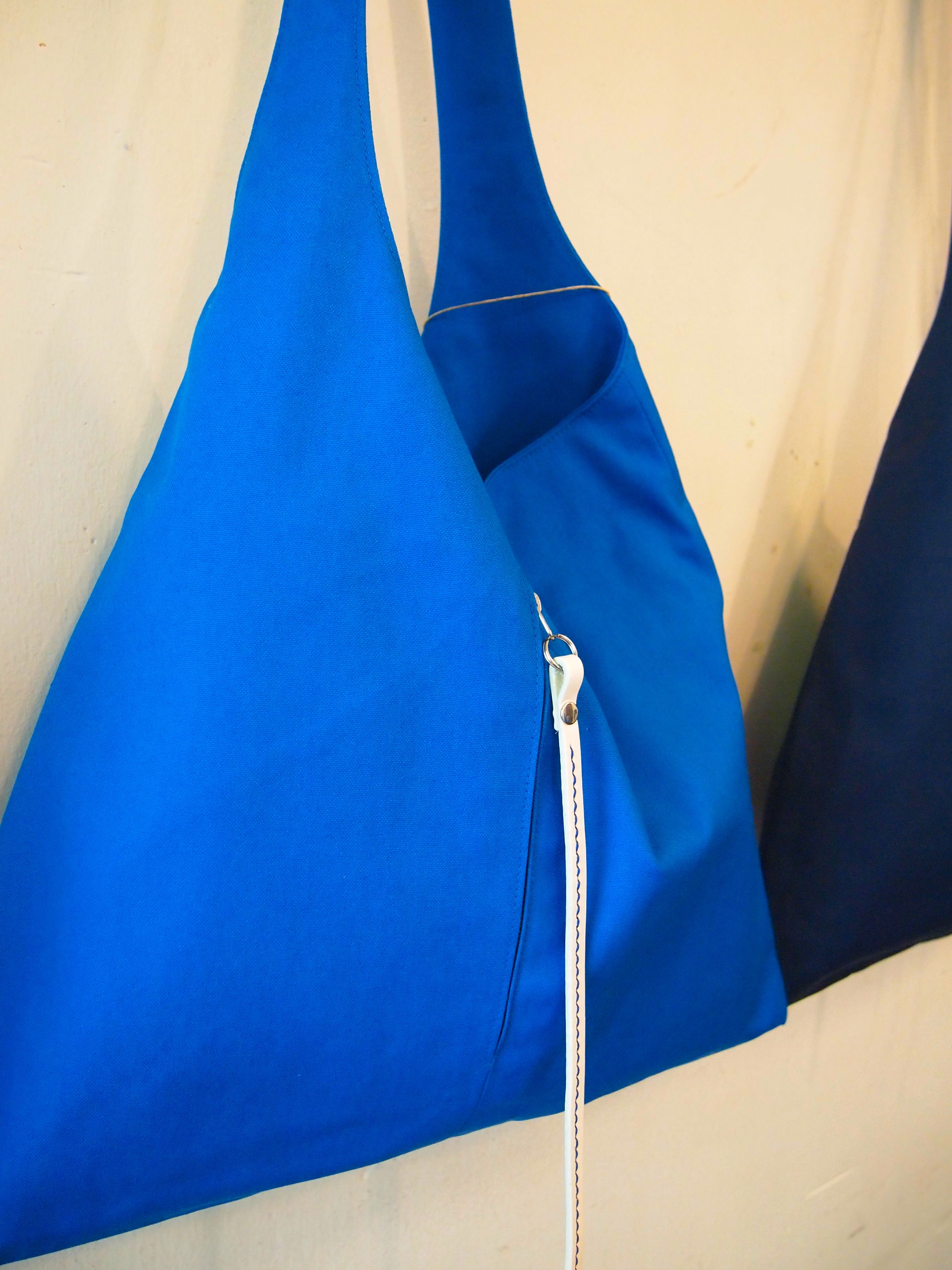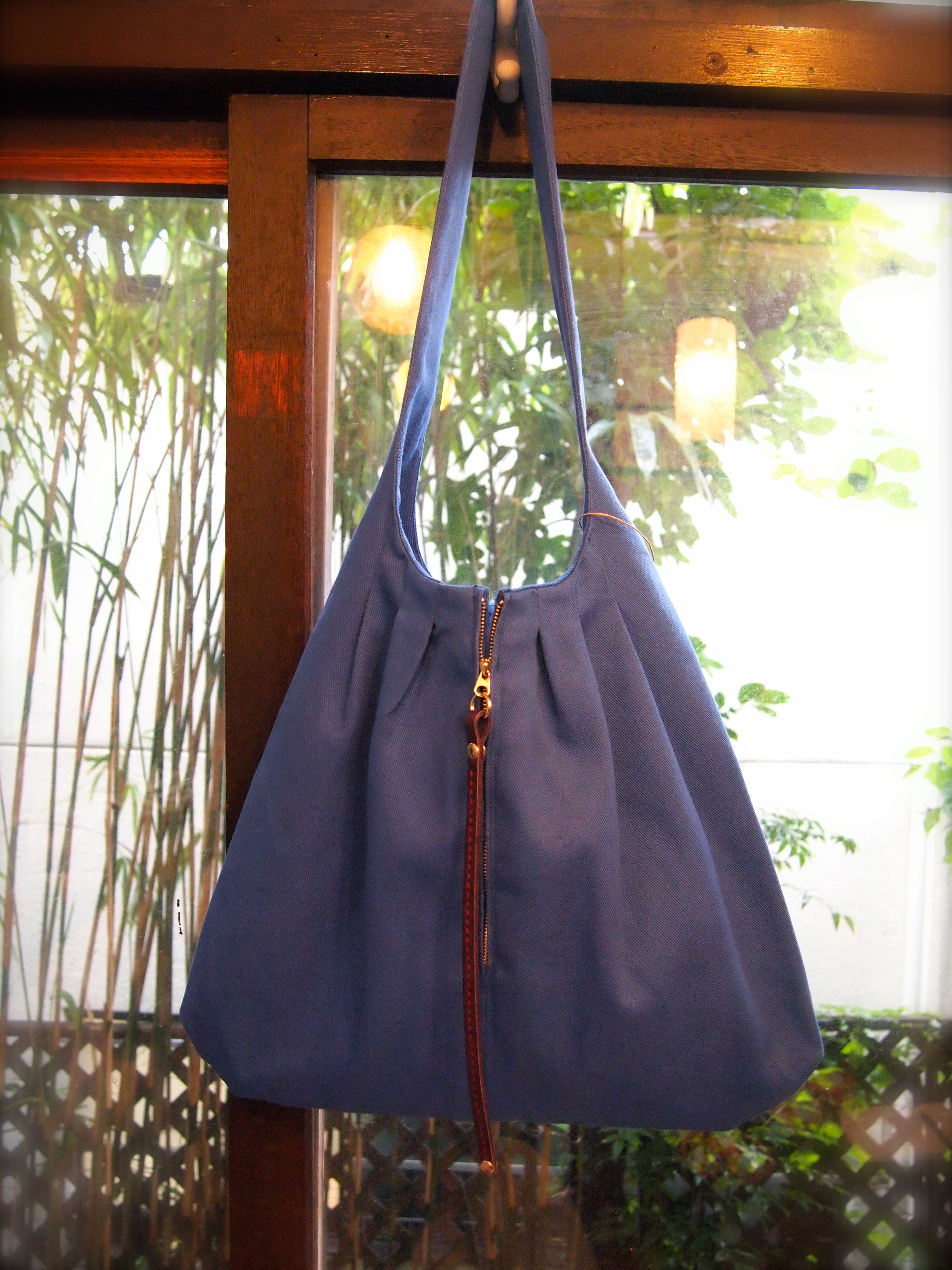 オリジナルは帆布生地の青系のカバンです。(左)