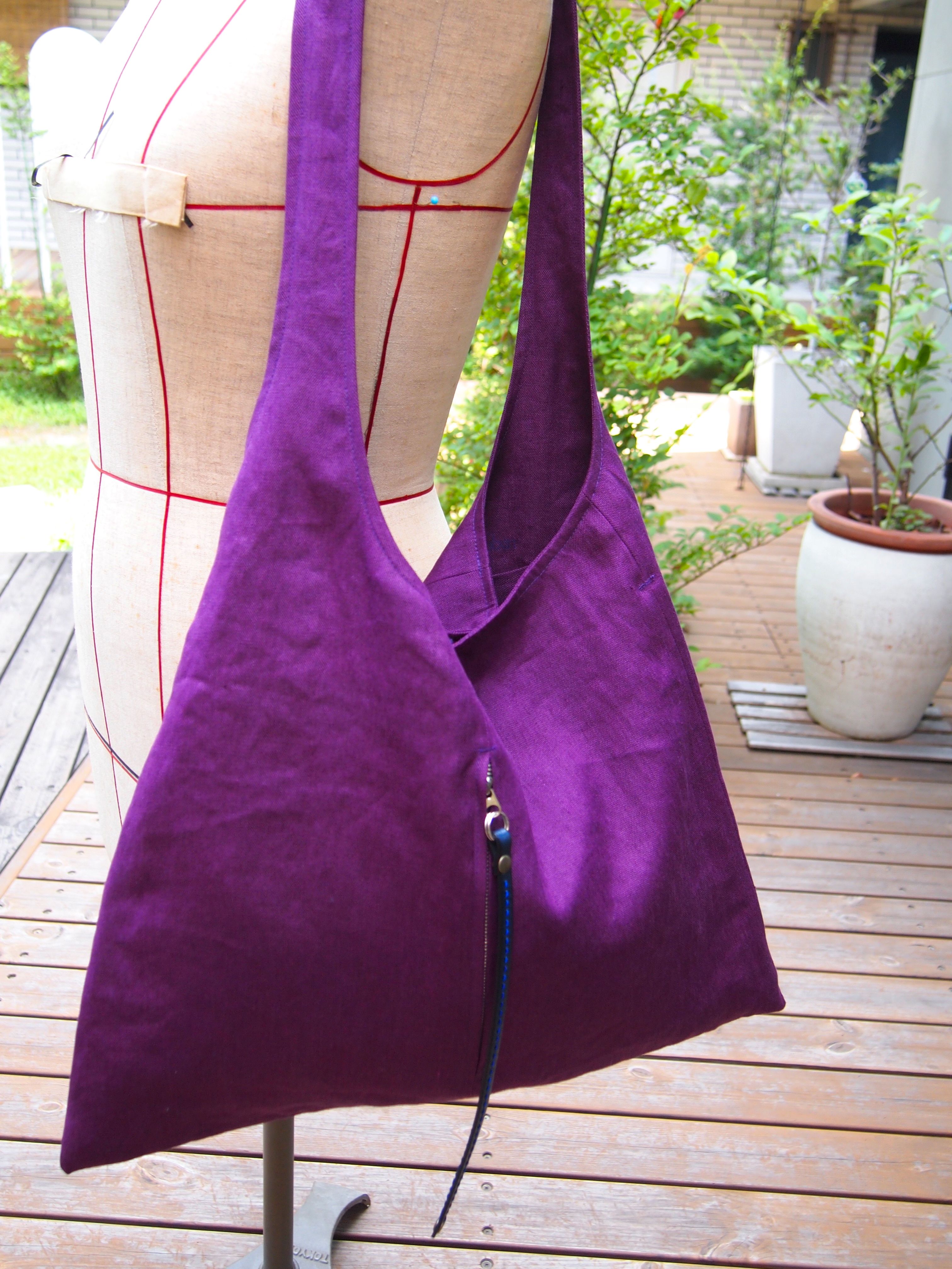 紫の麻帆布生地でカスタマイズしました。 (右)