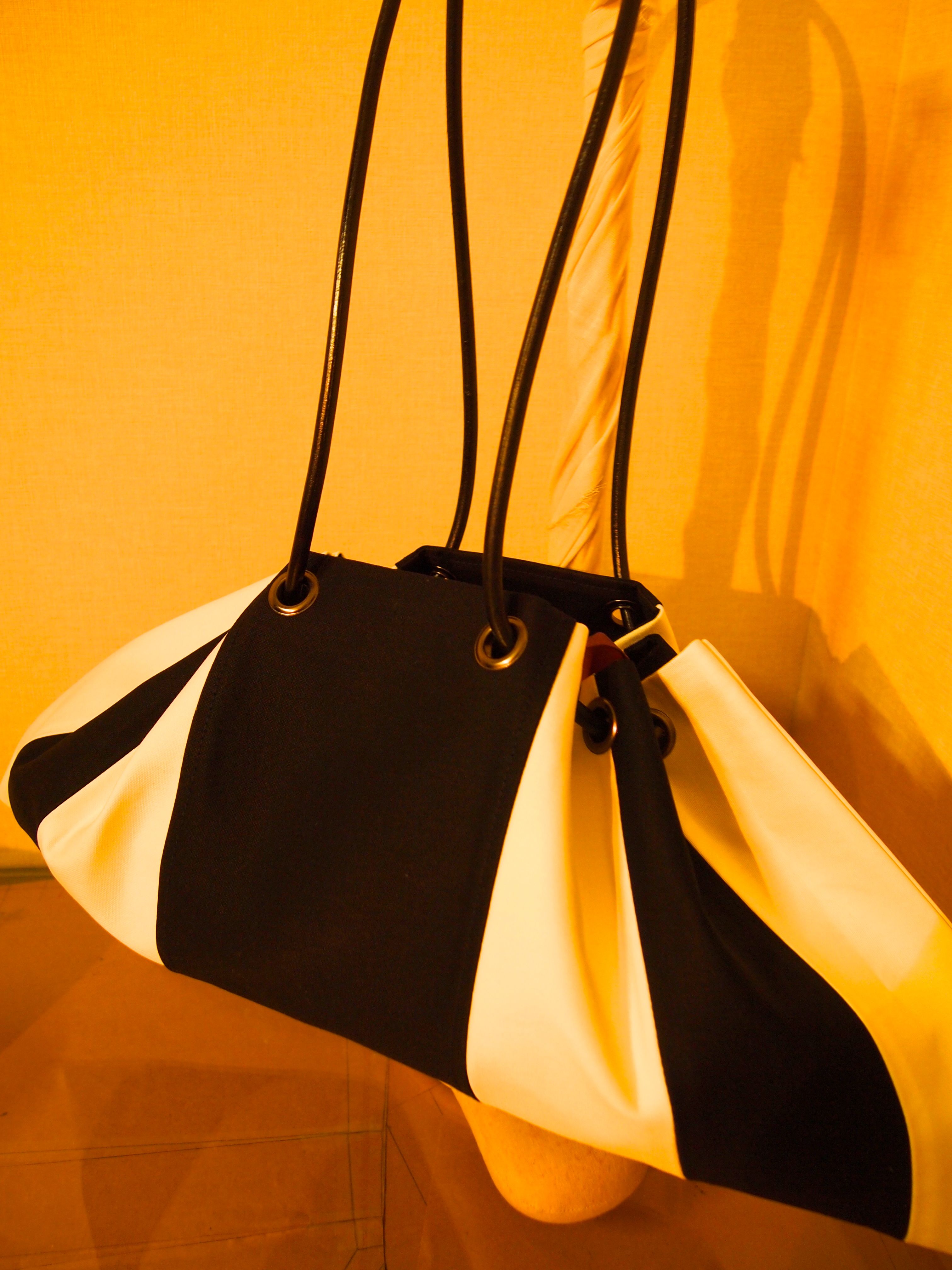 モノトーンで少し長めの肩掛けにカスタマイズしました。(右)