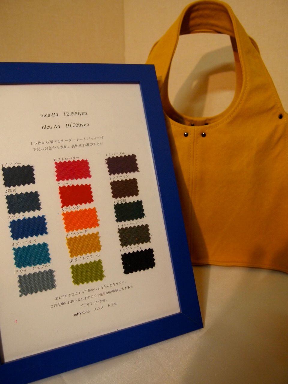 表地、裏地を15色から選べるトートバックです。